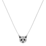 قلادة Panda بتعليقة على شكل باندا مرصّعة بالألماس المزروع مخبرياً، معلّقة على سلسلة من الفضة الإسترلينية عيار 925. قطعة صغيرة بحضور لافت، تجمع بين البراءة والرقي.