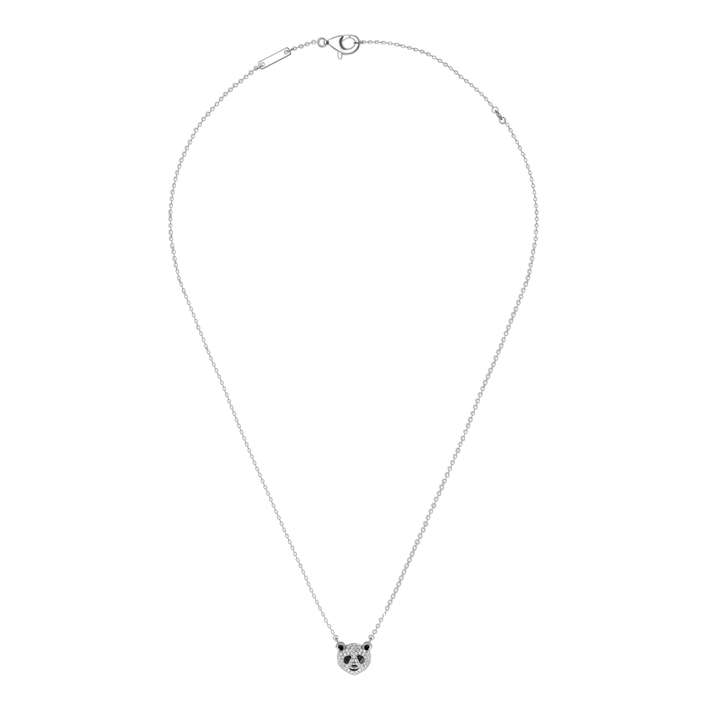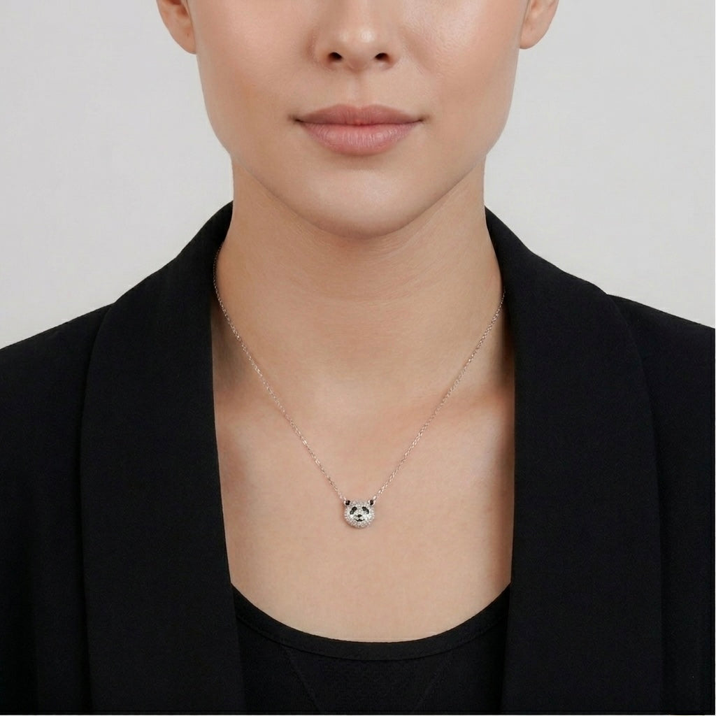 A panda pendant set with lab-grown diamonds, suspended on a 925 sterling silver chain. Small in scale, gentle in spirit — a quiet piece that charms without effort.